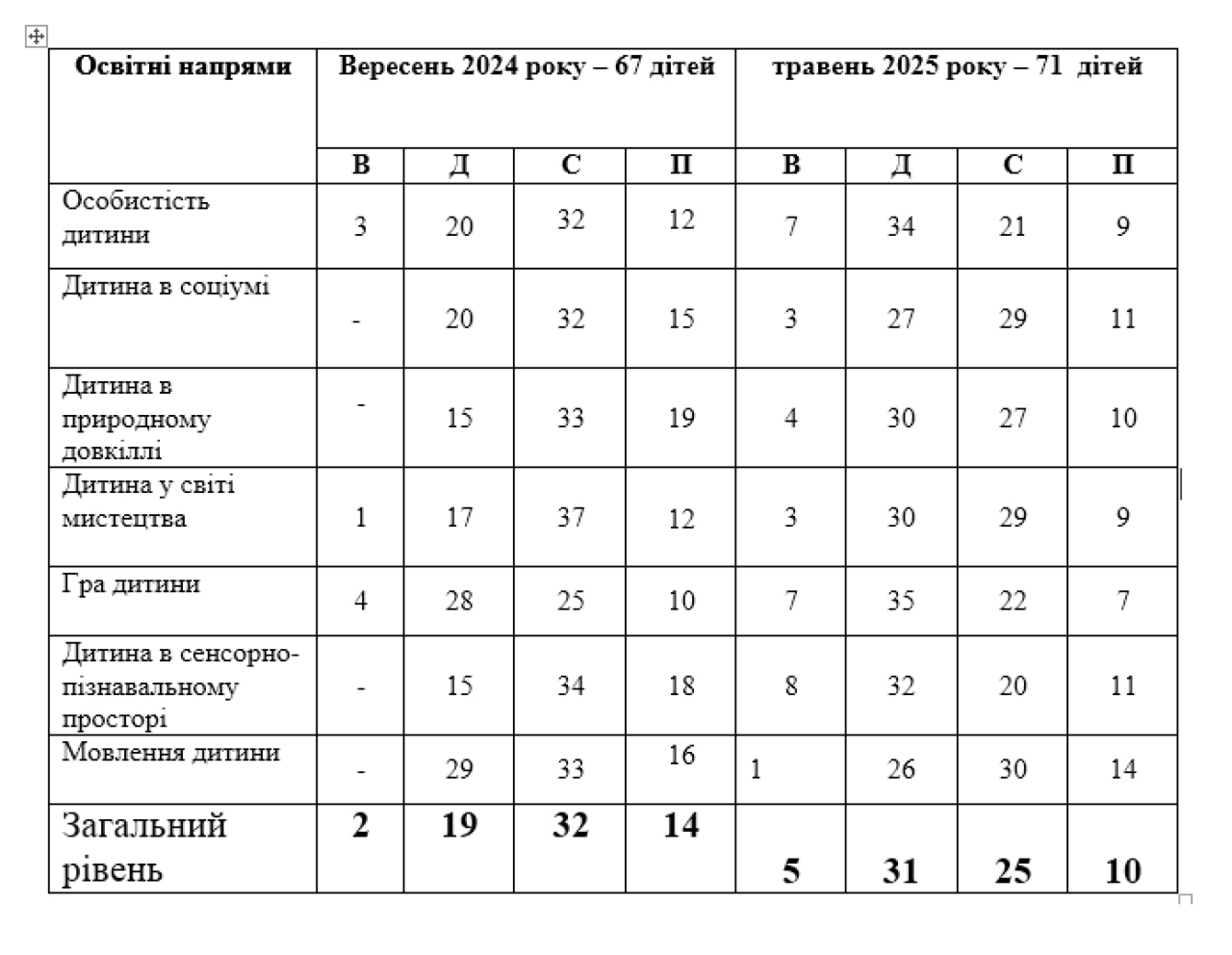 З початковим рівнем розвитку залишаються ті діти, що мало відвідували дошкільний заклад у групі.