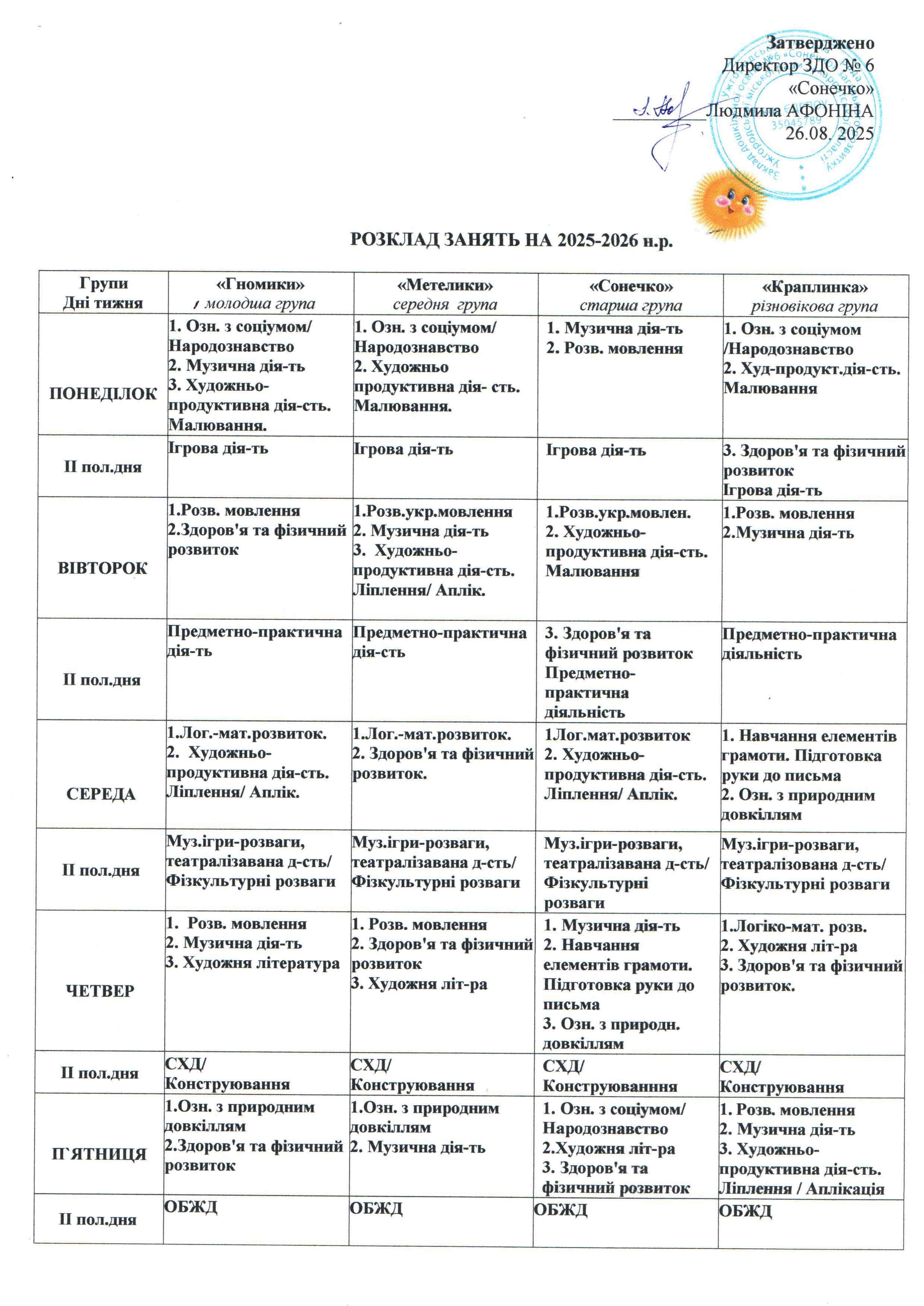 Розклад занять