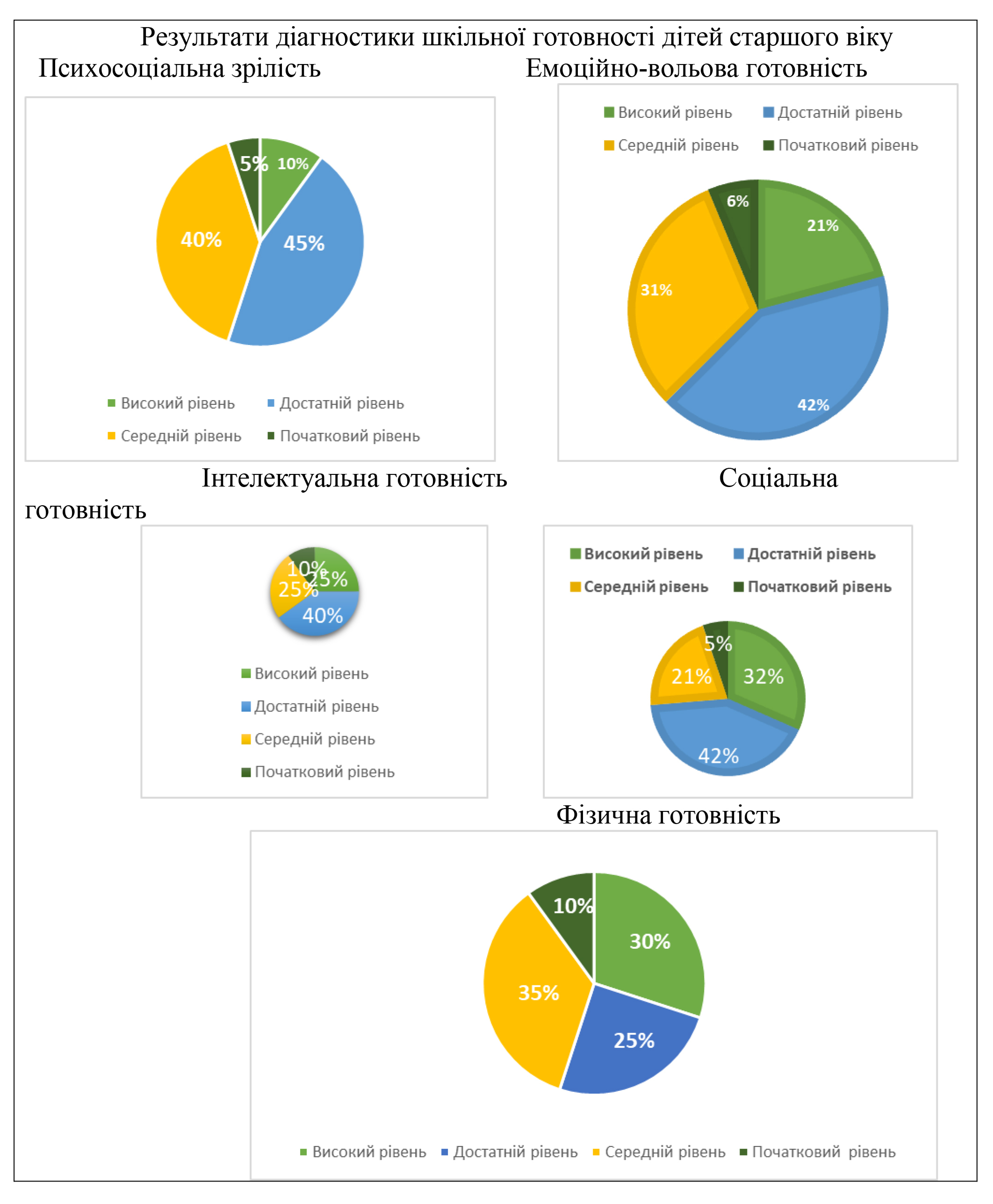 Вихователі старшої групи «Гномики» Бейреш А.Л., Жека Л.І., вихователі різновікоової групи Артемюк В.В., Білак І.А. приділяли належну увагу розвитку пізнавальних процесів, зв’язного мовлення, формуванню мотиваційної готовності до навчання в школі дітей старшого дошкільного віку. Діти-випускники мають розвинуті психічні процеси, добрі потенційні можливості в галузі розвитку пізнавальних процесів; достатній рівень працездатності та рівень розумової активності; у дошкільників сформовані навички навчальної діяльності, вони мають середній і достатній рівень саморегуляції і самостійності, уміють слухати і виконувати вказівки дорослого, контролювати себе, оцінювати свої відповіді й відповіді однолітків. Це свідчить про те, що протягом всього навчального року в закладі дошкільної освіти планомірно проводилась робота з підготовки дітей дошкільного віку до шкільного навчання. До навчання у школі успішно підготовано 20 дошкільників.